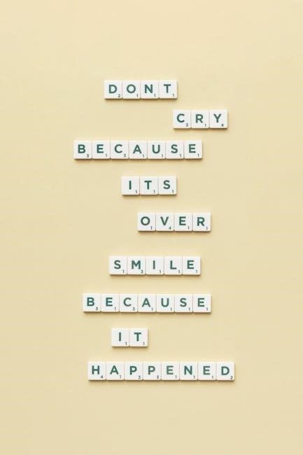 Because of Winn-Dixie tenderly explores Opal’s journey through loss and grief, particularly her longing for her absent mother. The PDF version of the book highlights how Opal finds solace in Winn-Dixie and the friendships they build, showing how connections can heal emotional wounds. The story illustrates that grief is a natural part of life but can be navigated with love and support. The accessible PDF format ensures this poignant message reaches readers, offering comfort and understanding. Celebrating its 25th anniversary, the novel remains a powerful tool for helping young readers process difficult emotions, proving its timeless relevance in addressing universal human experiences.